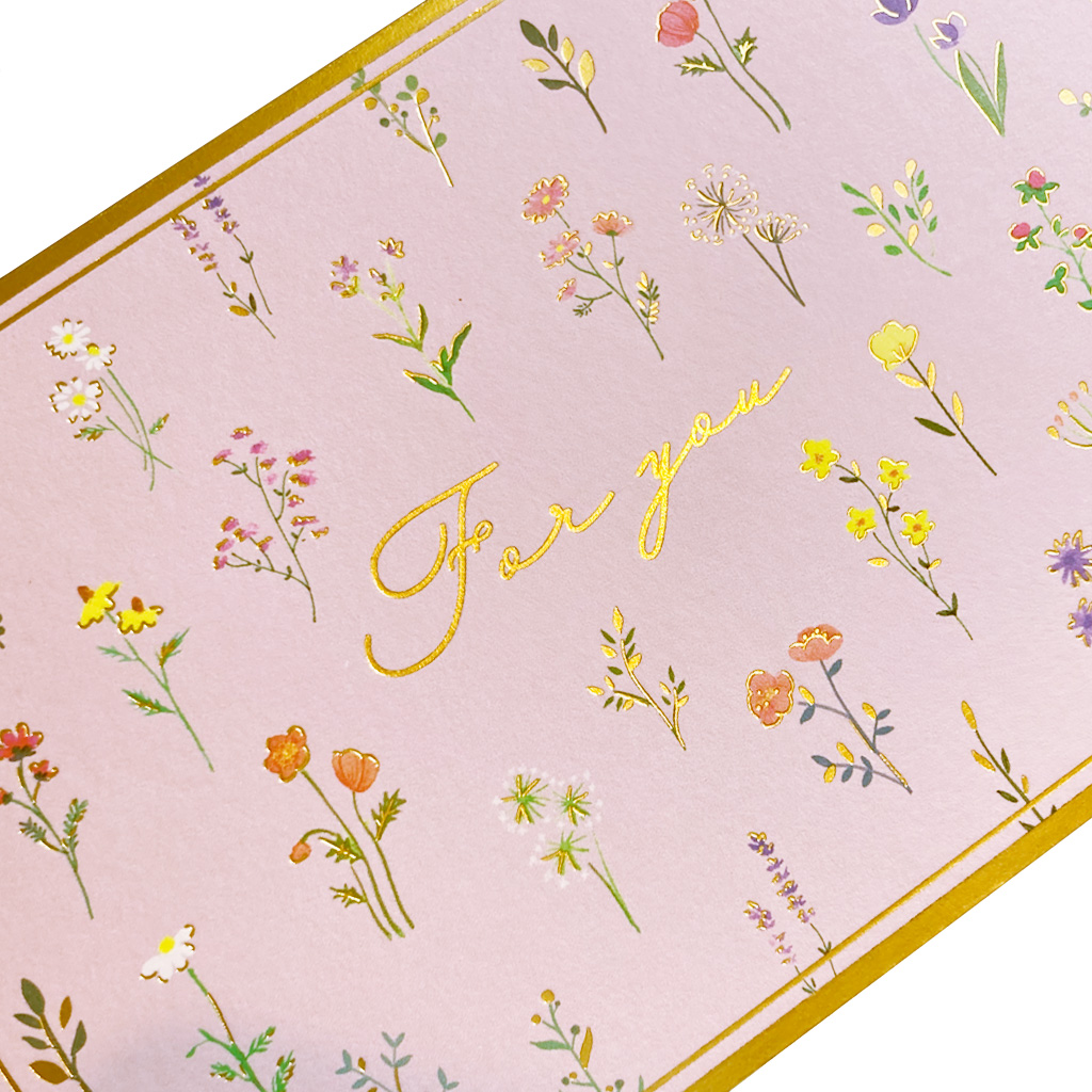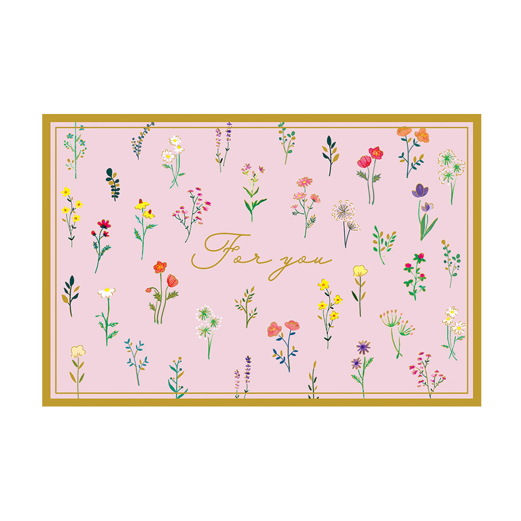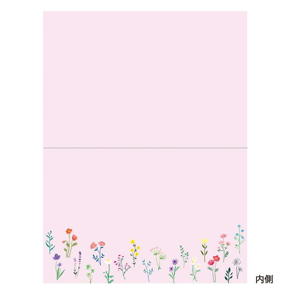 内側にも絵柄の入ったピンクの花柄のエブリデイカードです。カードが透けて見えるトレーシングペーパーの封筒と宛名シール付き。「My Favorite Things シリーズ」使う時にうれしい『お気に入り』になる彩り豊かな花柄のシリーズです。
